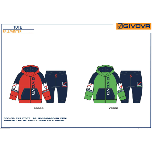 TUTA FELPA ZIP GIVOVA M ART.7471T0071 TG.12-36MESI