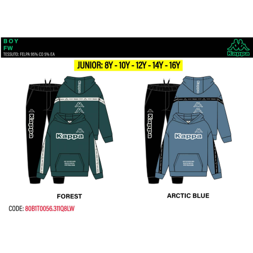 TUTA FELPA CAPPUCCIO KAPPA M ART.80B1T0056R TG.8-14ANNI