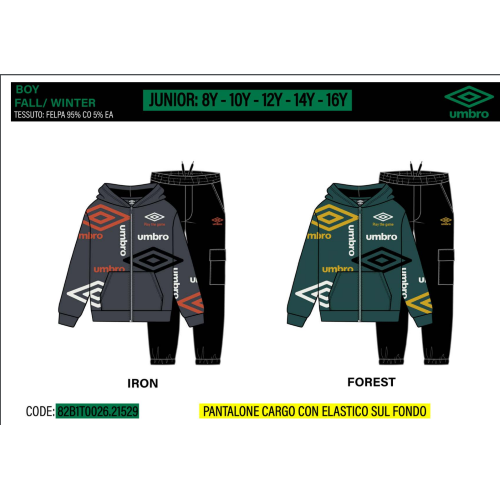 TUTA FELPA ZIP CAPPUCCIO UMBRO M ART.82B1T0026R TG.8-14ANNI